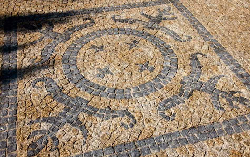 Pátio exterior de moradia particular, na Galiza, com decorações em granito. Nesta obra foram utilizadas as referências: